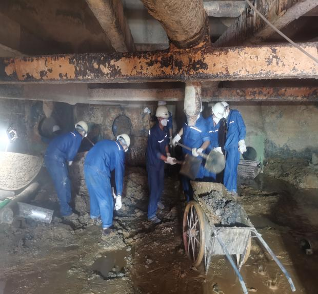 生產(chǎn)班組人員清理吸收塔沉淀物清理