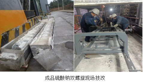 為提升硫酸鈉的品質(zhì),減少系統(tǒng)非計(jì)劃停機(jī)等風(fēng)險(xiǎn),威遠(yuǎn)藍(lán)鼎生產(chǎn)部在運(yùn)維部、供應(yīng)部大力支持下決定將兩條螺旋技改成輸送皮帶,2023年1月14日,蒸發(fā)濃縮停機(jī)檢修,生產(chǎn)部長(zhǎng)黃安軍、楊平、宋雨鵬協(xié)同檢修班長(zhǎng)和生產(chǎn)技術(shù)員張衛(wèi)健,集中威遠(yuǎn)藍(lán)鼎檢修骨干對(duì)硫酸鈉兩條螺旋開始技改工作,18:30硝螺旋改輸送皮帶技改完成進(jìn)行試車,1月15日凌晨3:00帶料試車正常,經(jīng)過(guò)1個(gè)月使用觀察,本次技改較螺旋故障率更低,物料輸送更松散、均勻,也大大改善了干燥后硫酸鈉積塊等問題,同時(shí)也得到了川威集團(tuán)銷售的認(rèn)可,體現(xiàn)了公司敢于創(chuàng)新的精神。