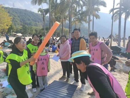 早上10點(diǎn)大家齊聚在金鱗沙灘,以做各類小游戲?yàn)橹黝}展開了本次的團(tuán)建,小游戲分為以下幾個(gè)項(xiàng)目: